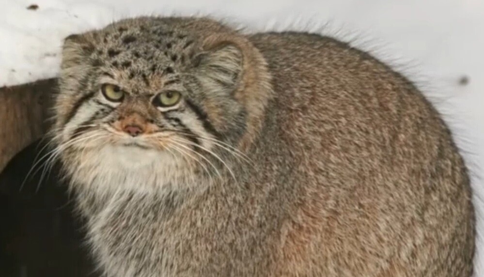 Manul usa la cola para calentarse en el invierno ruso (Vídeo)