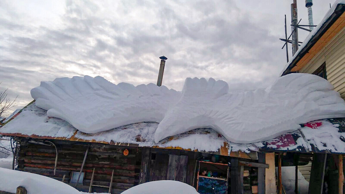 Esculturas de nieve creadas en azoteas por un avispado habitante de los Urales (Fotos)